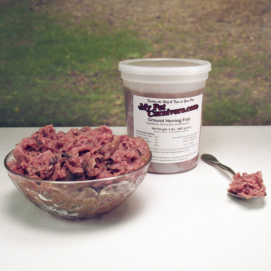 For our Ground Lake Herring-2 LB. we start with human-grade fish, caught for their roe. This coarse grind includes the head, flesh, skin & bones (no guts, they have been eviscerated). These are not scraps or throwaways! It is packaged in a convenient 2 LB. deli container. This quality fish contains almost no fat. It is all natural with no preservatives or additives. Enjoy this fantastic near-whole prey offering!