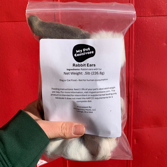Now offering raw rabbit ears with fur in tact! Fur is a great source of natural fiber for our carnivore friends. Great for adding in some enrichment for your furry friend.