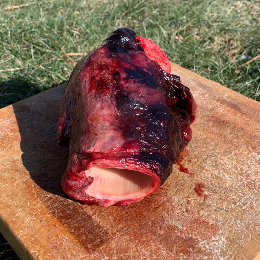 Note: Every attempt has been made to remove the thyroid from our cows during slaughter. This is because thyroid tissue can elevate your pet's thyroid hormones. However, we may have punctured the thyroid during removal. This could cause the gullet to contain elevated levels of beef thyroid hormone. Beef thyroid hormone fed in excess could cause thyroid issues in your pet. Please do not overfeed gullet.