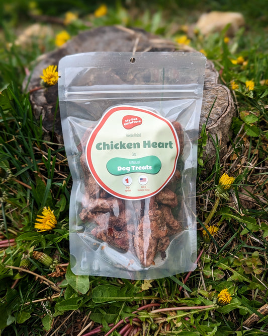 Enjoy whole chicken hearts from birds raised right here in the Midwest. These morsels are snack-sized & packed with flavor. With excellent shelf life & convenience, this wonderfully nutritious treat checks all the boxes! We use a gentle freeze-drying process to maximize the preservation of the vital nutrients your pet needs. No additives, preservatives, or fillers--just wholesome goodness that will keep your pet asking for more!