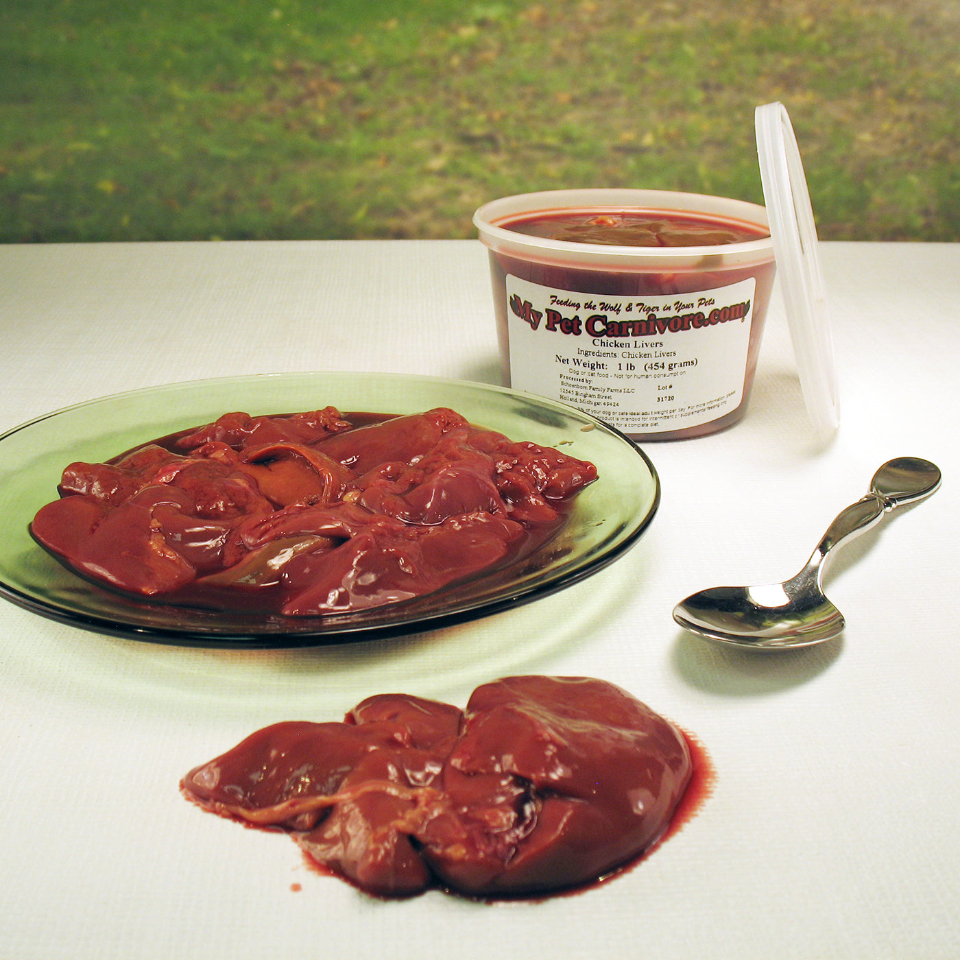 Behold! It's 1 LB. of Whole Chicken Livers that are packaged for your convenience in a deli container. These Michigan-sourced livers are beautifully large, juicy & plump. They have been fresh frozen for optimal nutrition for your pet. Each of these bird organs is about the size of a silver dollar.