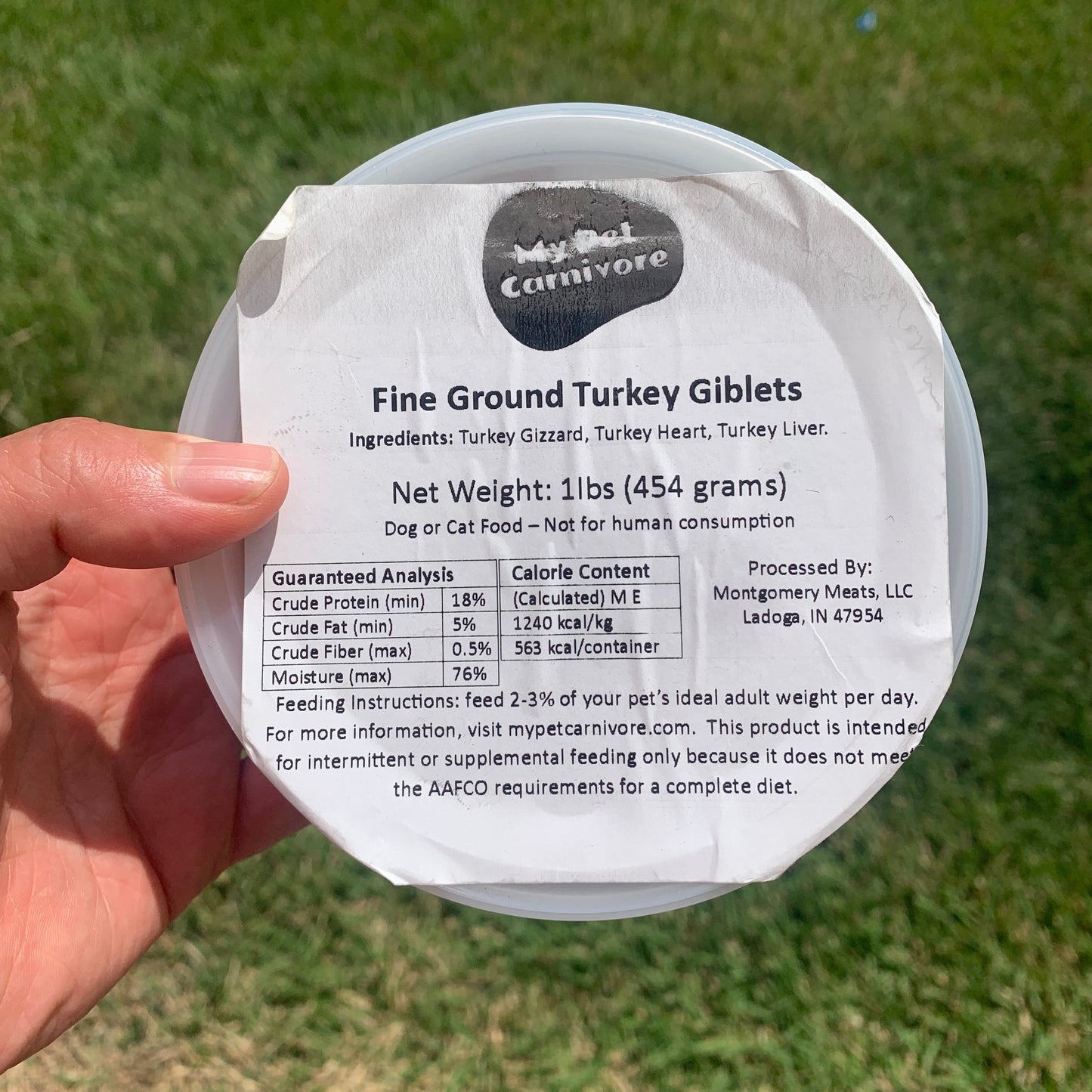 Ingredients: Turkey gizzards, turkey hearts, turkey liver.