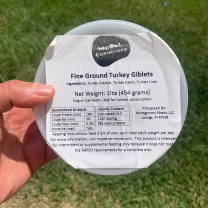 A delicious blend of turkey gizzards, turkey hearts, & turkey liver, sure to please your pet! Ready to add to your pet's bowl. A perfect topper to your pet's current food or a great addition to homemade raw diets!