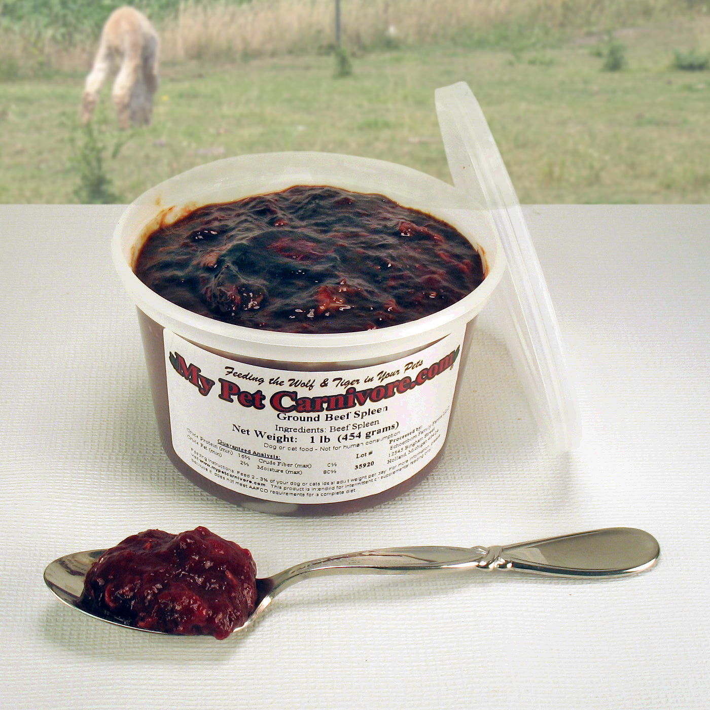 Live a life of Spleen-dor! Beef Spleen in the amount of one pound is packaged in a convenient to-serve deli container. It has been coarse ground for ease of use.