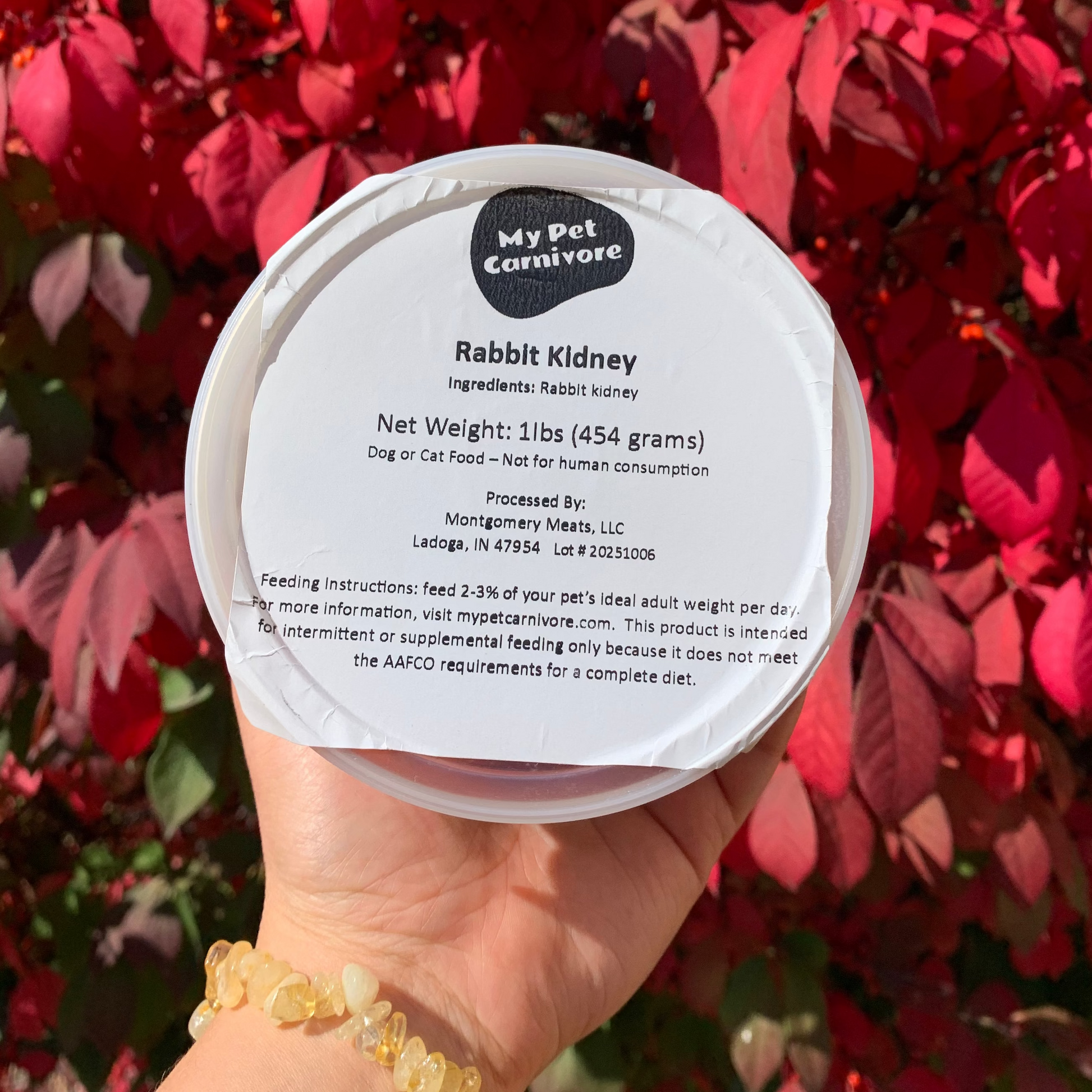 Our Rabbit Kidney – 1 LB offers a smaller, single-protein kidney option that’s perfect for pets with sensitivities or those needing to rotate novel proteins. Each container includes whole rabbit kidneys with their natural fat still intact — a valuable source of fat-soluble vitamins and energy for your carnivore.